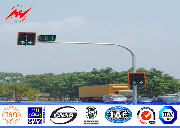 6m galvanized 3mm thickness Traffic Light Pole with single bracket for roadway traffic sign