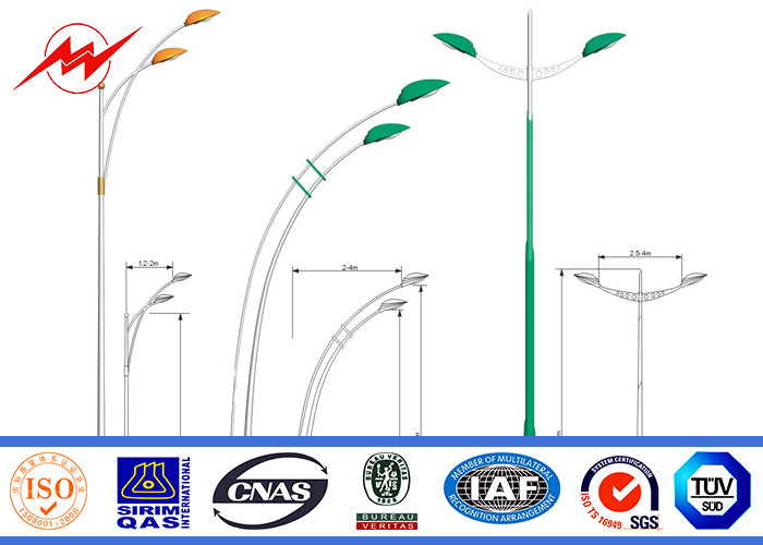12M Double Arm 4mm Parking Lot Light Pole With 1.5M Cross Arm
